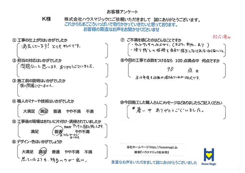 作業中もでしたが、足場解体後、全体が見えてから一層嬉しく思っています。(キレイになった我家)- 担当営業の対応はいかがでしたか?
